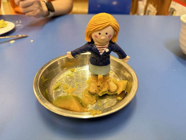 可用雙手或用公仔,將南瓜變成南瓜泥。