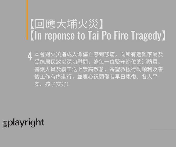 本會對火災造成人命傷亡感到悲痛,向所有遇難家屬及受傷居民致以深切慰問,為每一位緊守崗位的消防員、醫護人員及義工送上崇高敬意,寄望救援行動順利及善後工作有序進行,並衷心祝願傷者早日康復、各人平安、孩子安好!